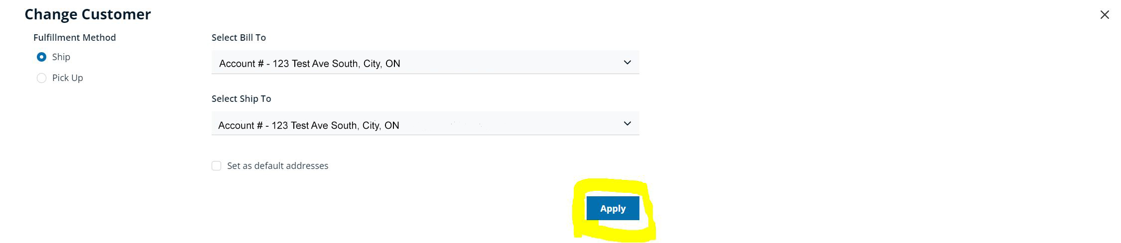 If you click "Change" for changing the pick up address, you can enter your address to find the closest branch to that entered address. Once you find the branch you would like, click "Select".