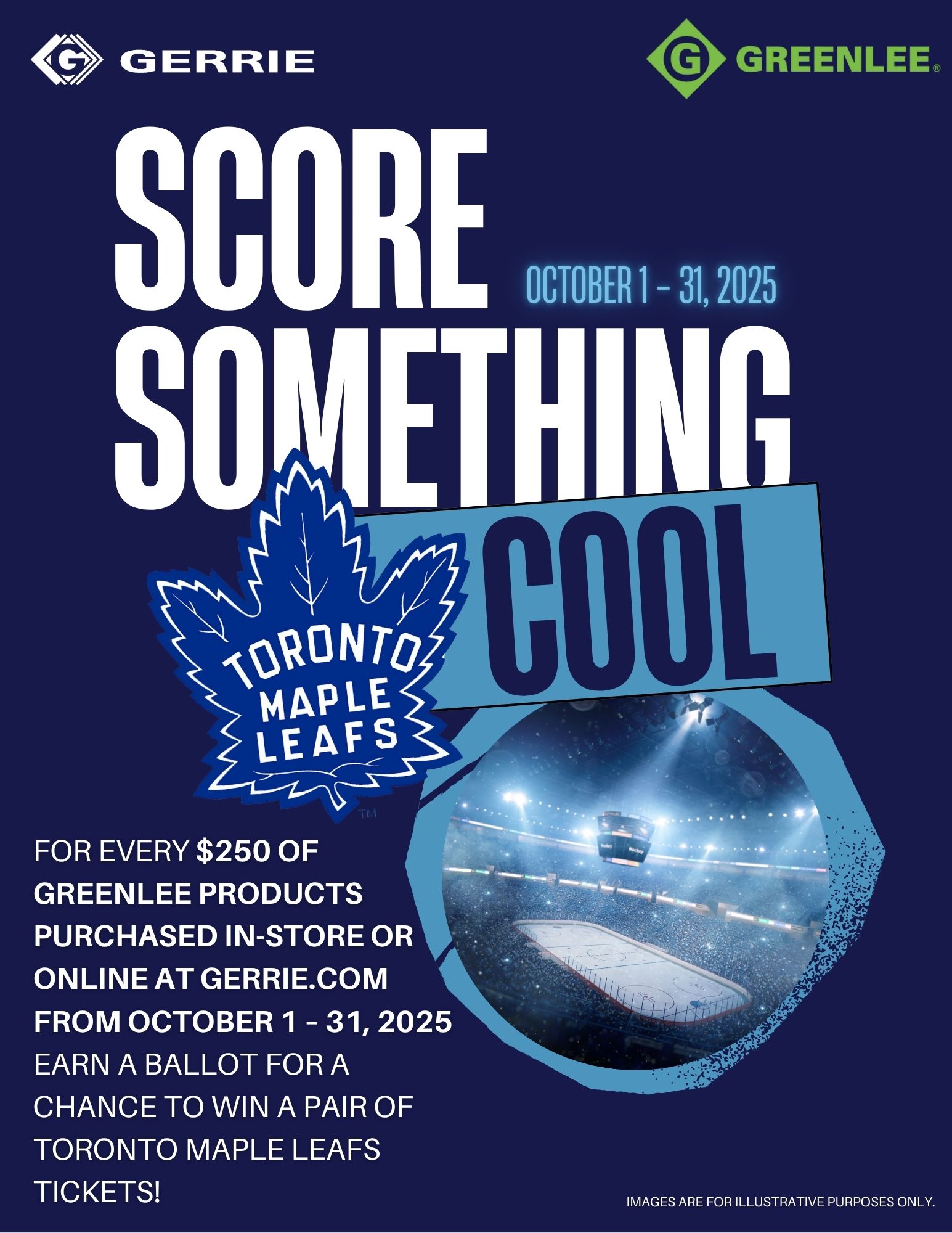 For every $250 of Greenlee products purchased in-store or online during the promotion, earn a ballot for a chance to win a pair of Toronto Maple Leafs tickets!