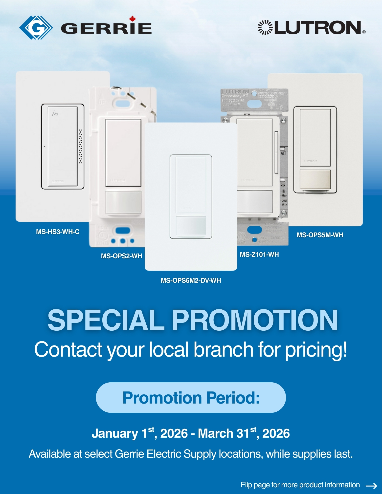 Available at select Gerrie Electric Supply locations and online while supplies last.